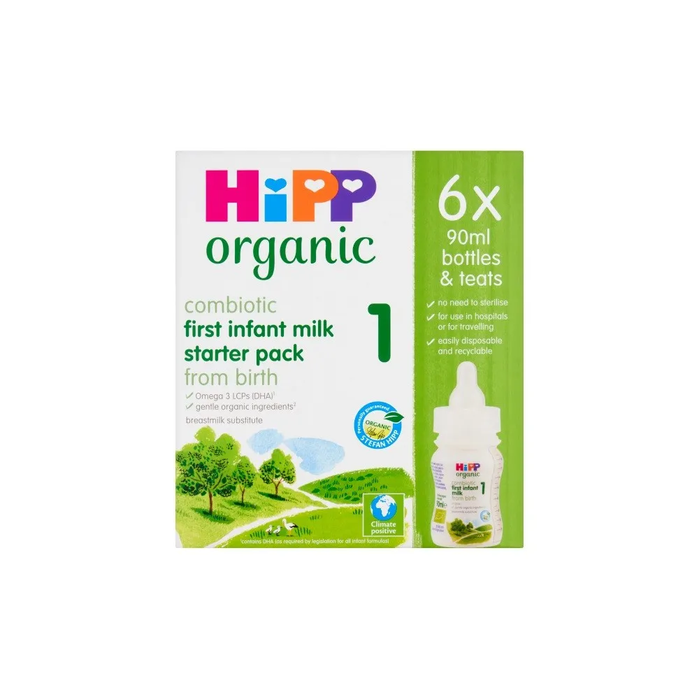 HiPP Organic 1 First Infant Baby Milk Ready to feed Starter pack from birth (6 x 90ml bottles)