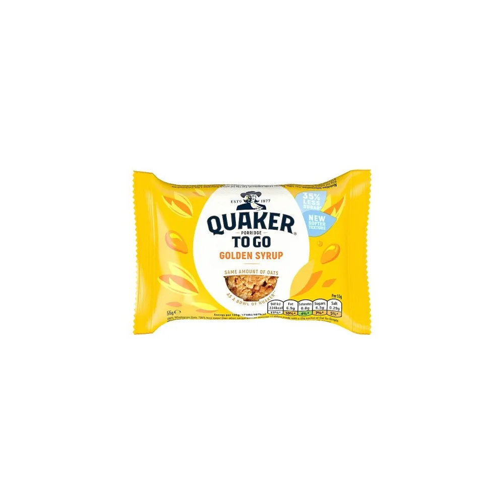 Quaker Porridge To Go Golden Syrup Breakfast Bar 55g