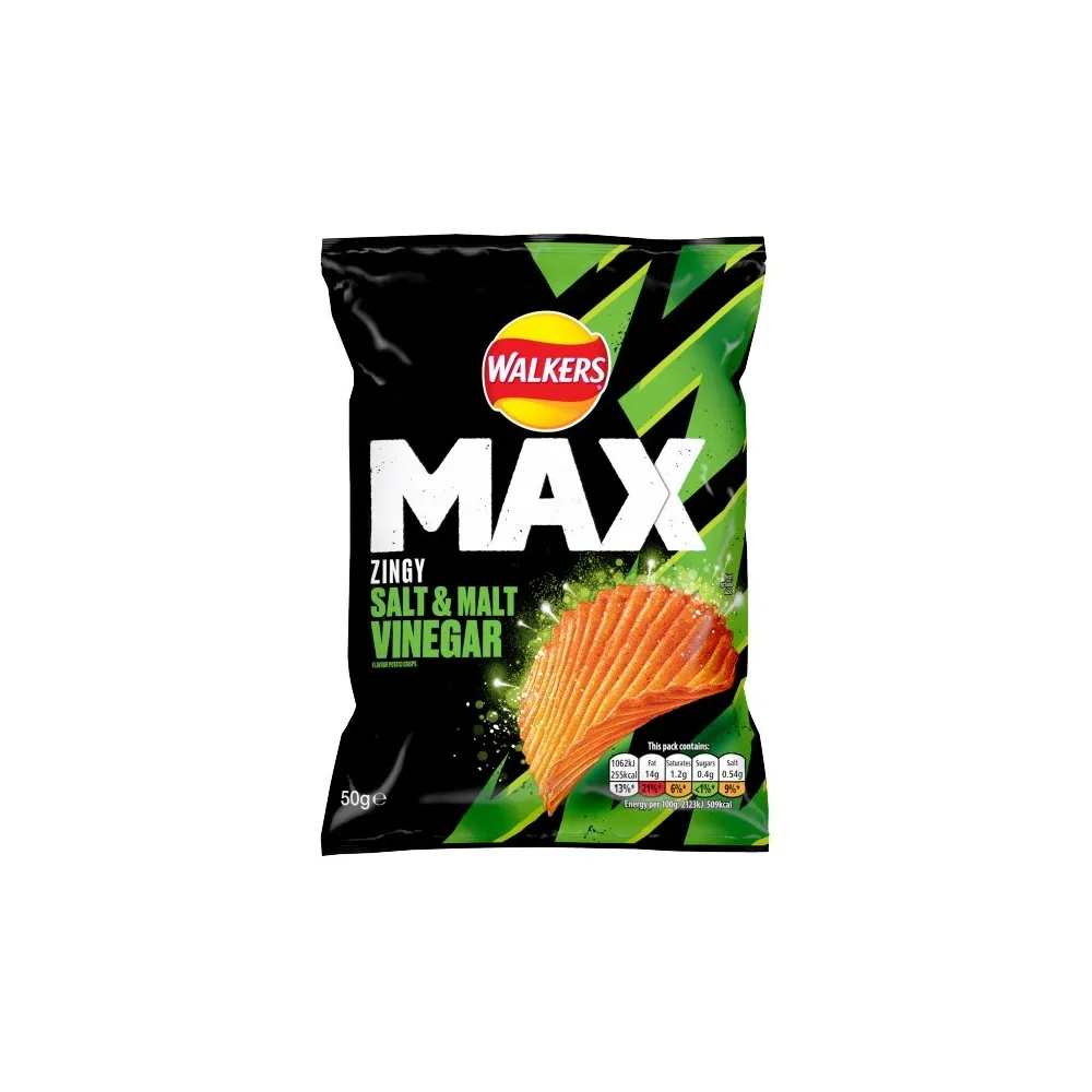 Walkers Max Zingy Salt & Malt Vinegar Crisps 50g