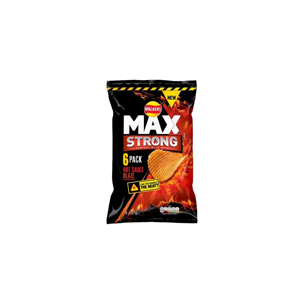 Walkers Max Strong Hot Sauce Blaze Flavour Potato Crisps 6 x 27g